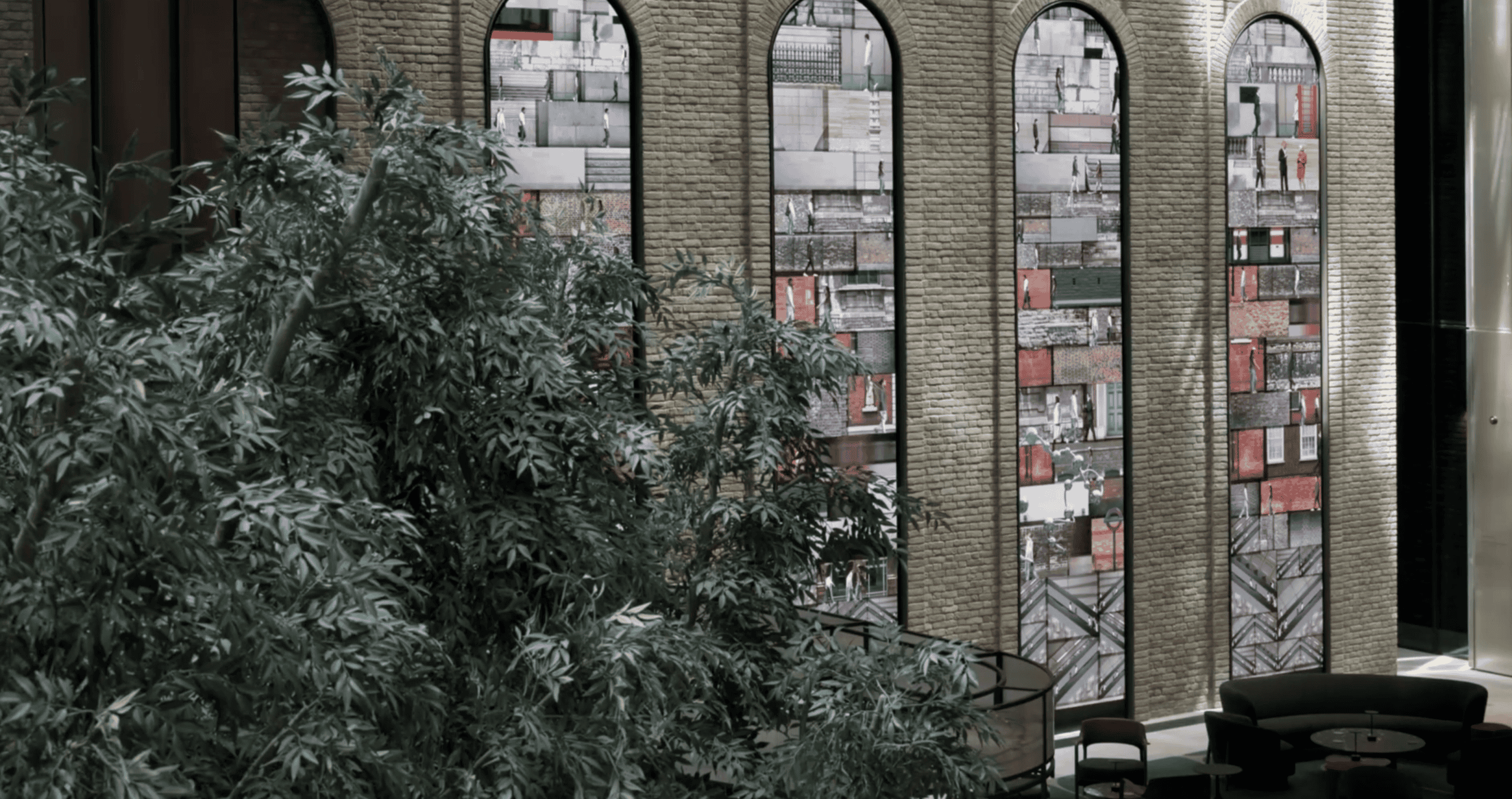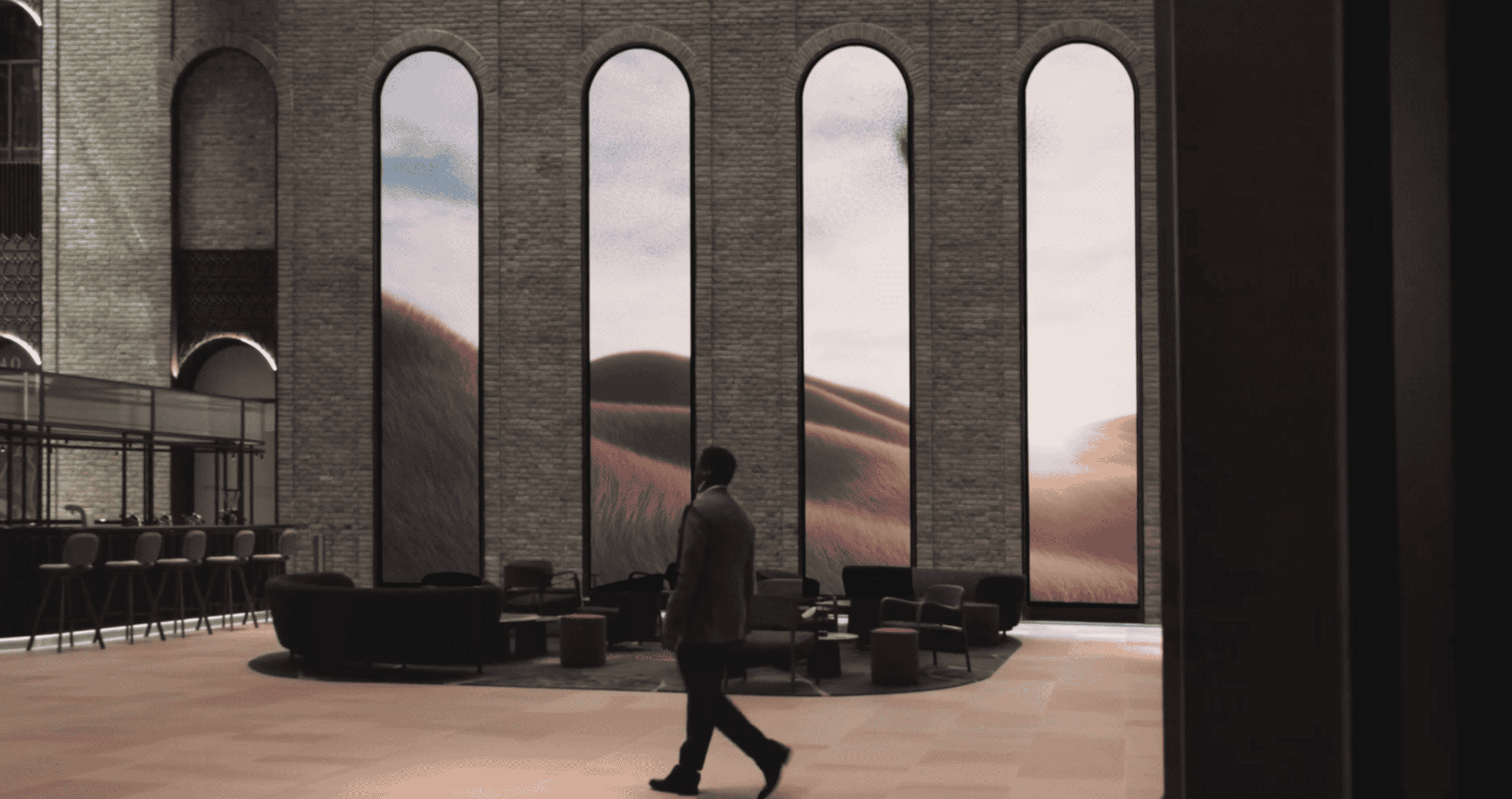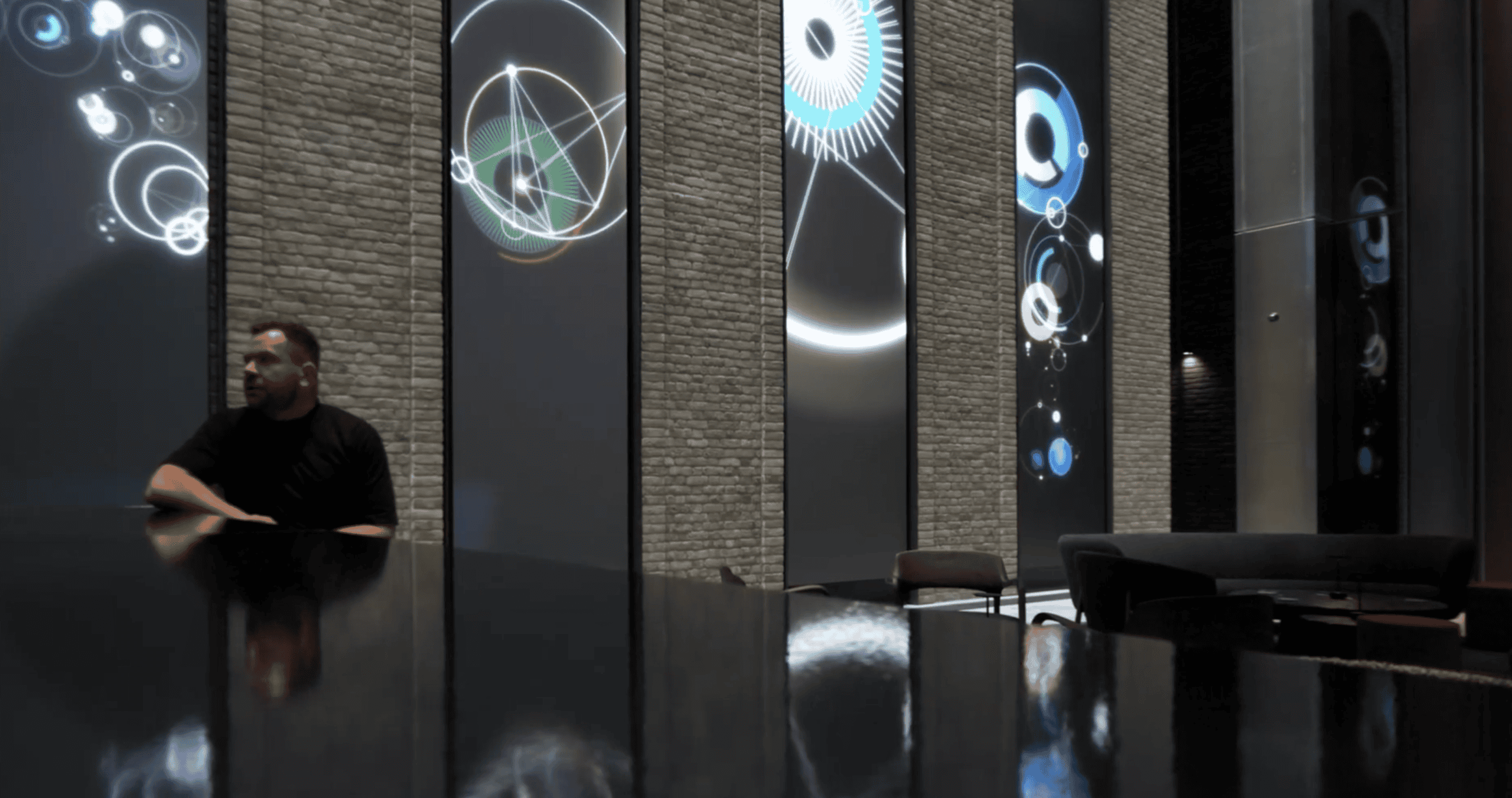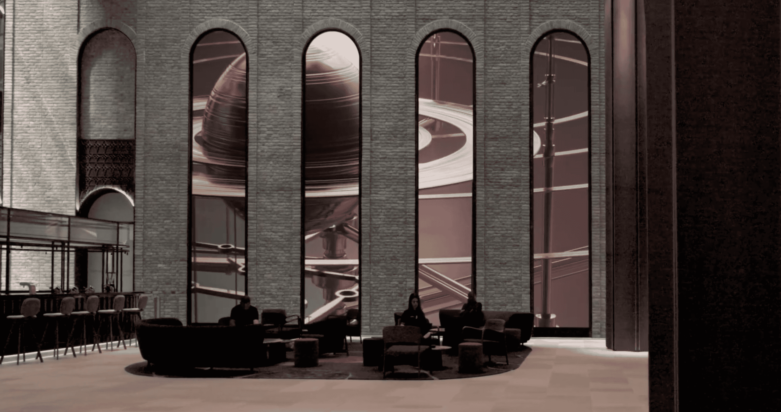 The core idea was simple: create four tall, arched “windows” that look like part of the building fabric, but behave like a dynamic digital canvas.